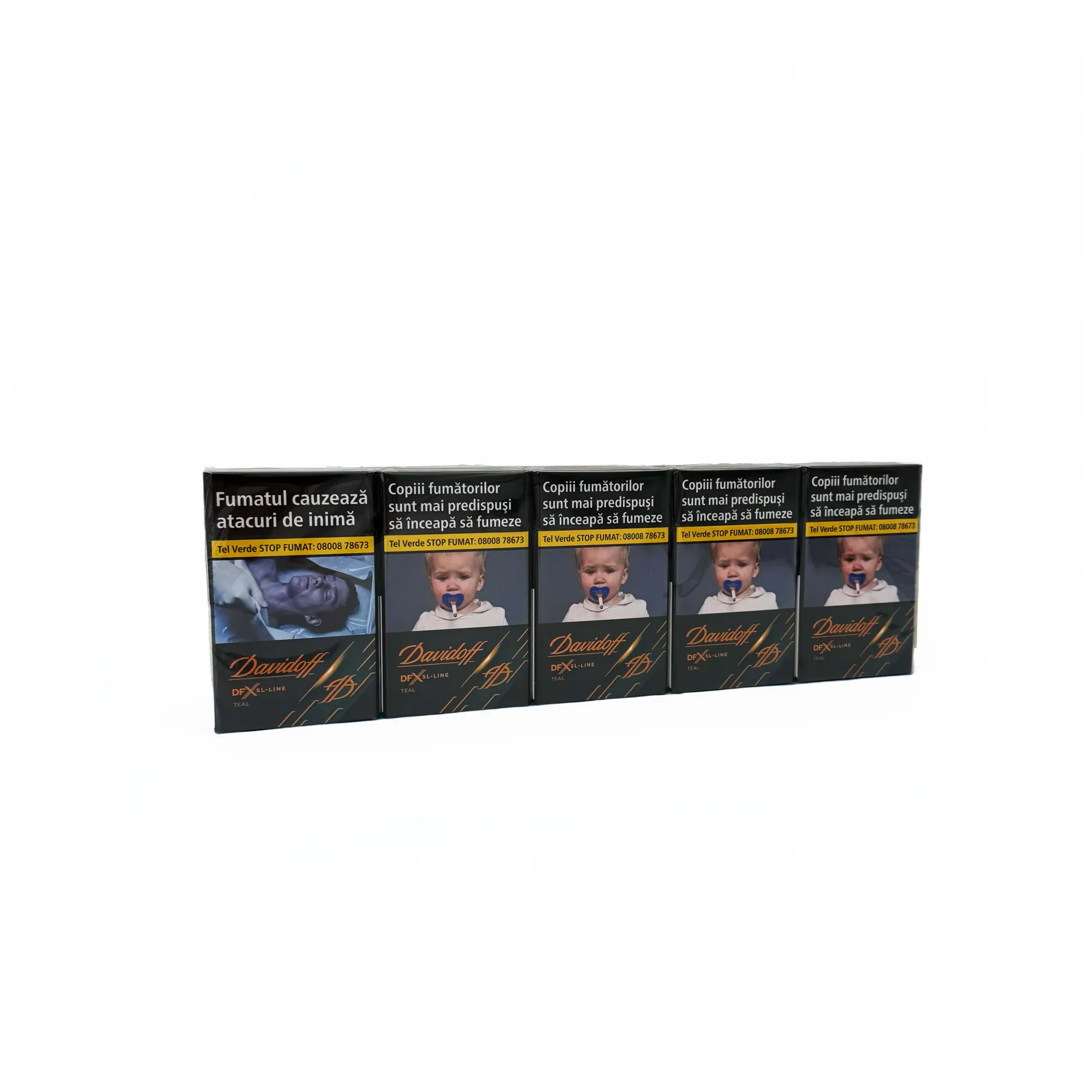 Interzisă vânzarea către minori. Directiva Consiliului CE 2001/37/CEE. Fumatul dăunează grav sănătății dumneavoastră și a celor din jur. Fumatul în timpul sarcinii dăunează copilului dumneavoastră. Protejați copiii: nu-i lăsați să respire fumul dumneavoastră. Fumatul dă dependență, nu începeți să fumați! Oprirea fumatului scade riscul de îmbolnăviri cardiace sau pulmonare fatale. Fumatul poate provoca o moarte lentă și dureroasă.